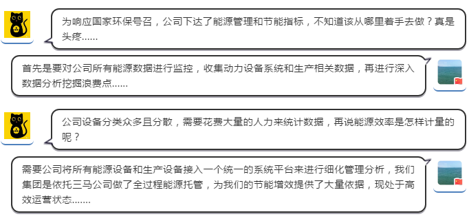 三马公司现已为全国近200家企业提供能源管理服务,协助工业企业建立能源管理体系和系统、制定能源体检制度、研制数据挖掘模型等。企业可在平台上实现能源费用内部分摊和结算、能耗数据查询、能耗数据对比统计、生产设备能耗分析、生产单耗分析、行业大数据对标分析等高级应用功能。为客户提供稳定可靠、功能优异的软硬件一体解决方案,助力各工业企业实现节能增效的规划。