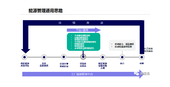 在整个能源管理过程中,能源管理平台是必不可少的一个管理工具,但是传统的能源管理平台,只能辅助能源管理的分析,并不能直接达到节能降耗的根本目标。若想要使企业持续处于能效管理的高效运行,提升能源效率和自动化识别改善项目是关键工作,这就需要依托于从能源管理系统升级至能效管理系统可以做出的以下改善:能效平台的功能规划、能效分析模式 、自动发现浪费、全厂公辅设备能效评测等,通过平台对企业能效进行自动分析,主动挖掘浪费点,从传统的结果管理提升到过程自动管理,实现对重点用能环节的自动化评测和监督改善,使企业能效始终维持先进水平。