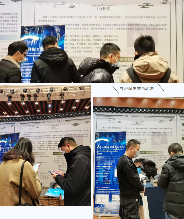 在重点用能企业和绿色工厂代表与参展企业交流对接环节,三马科技展台前咨询者络绎不绝,三马参展人员与咨询者对现阶段生产过程中遇到的节能痛点进行深入交流。众多参会企业表示对三马科技的工业智慧能效优化解决方案和公辅设备能效管理平台表示浓厚的兴趣,并与三马参展人员相互交换联系方式。