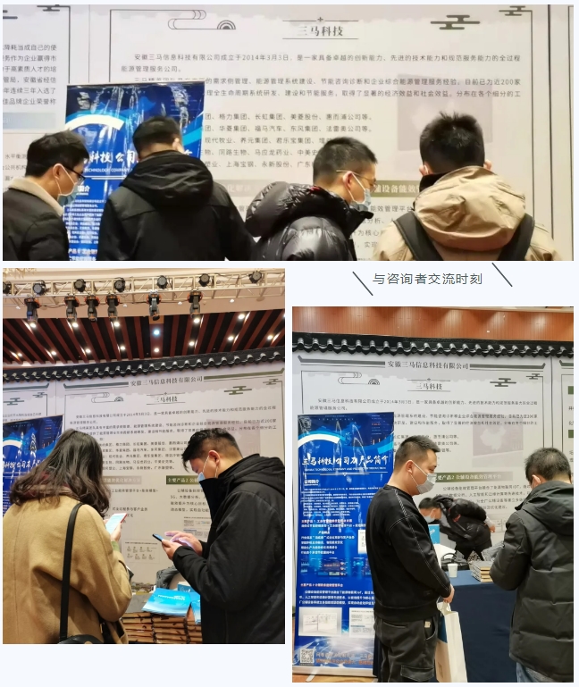 在重点用能企业和绿色工厂代表与参展企业交流对接环节,三马科技展台前咨询者络绎不绝,三马参展人员与咨询者对现阶段生产过程中遇到的节能痛点进行深入交流。众多参会企业表示对三马科技的工业智慧能效优化解决方案和公辅设备能效管理平台表示浓厚的兴趣,并与三马参展人员相互交换联系方式。