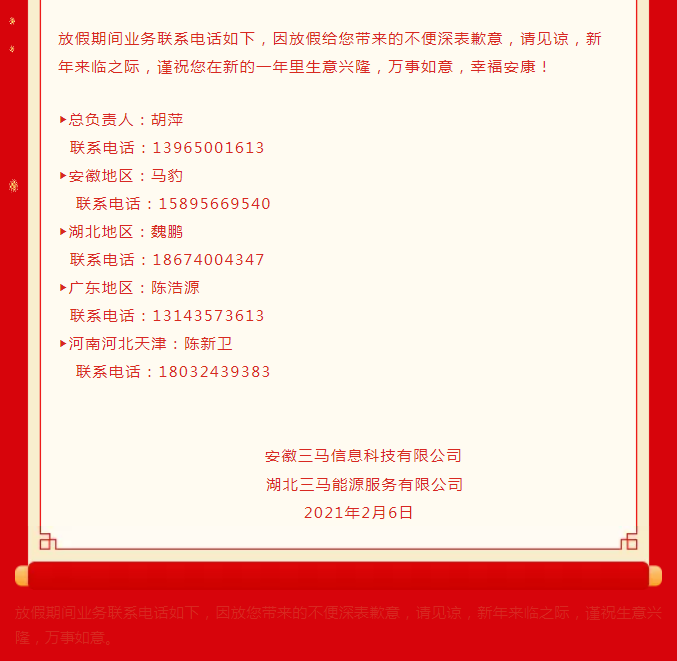 春节放假通知